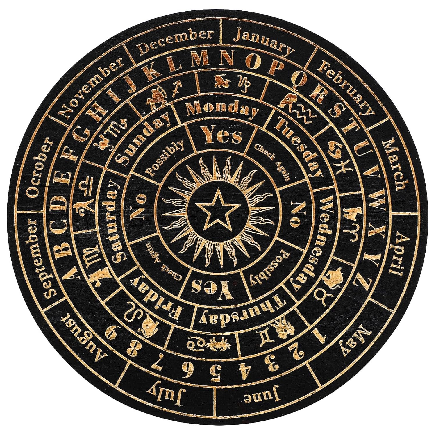 -Elegant design: The round shape and wood finish give this pendulum board a timeless and sophisticated look, making it a beautiful addition to any spiritual space star pendulum board.