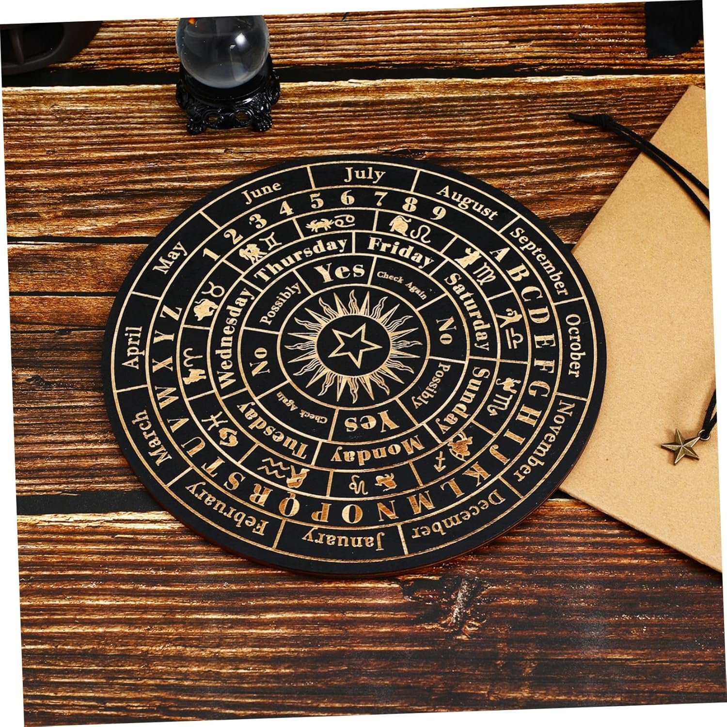 Meticulous craftsmanship: made from premium wood, this pendulum board is meticulously crafted to provide durability and a smooth, polished finish,spiritual decor,dowsing board