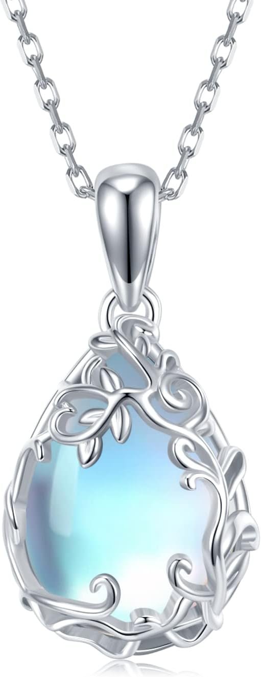 Teardrop Moonstone Necklace for Women 925 Sterling Silver Created Water-Shaped M…