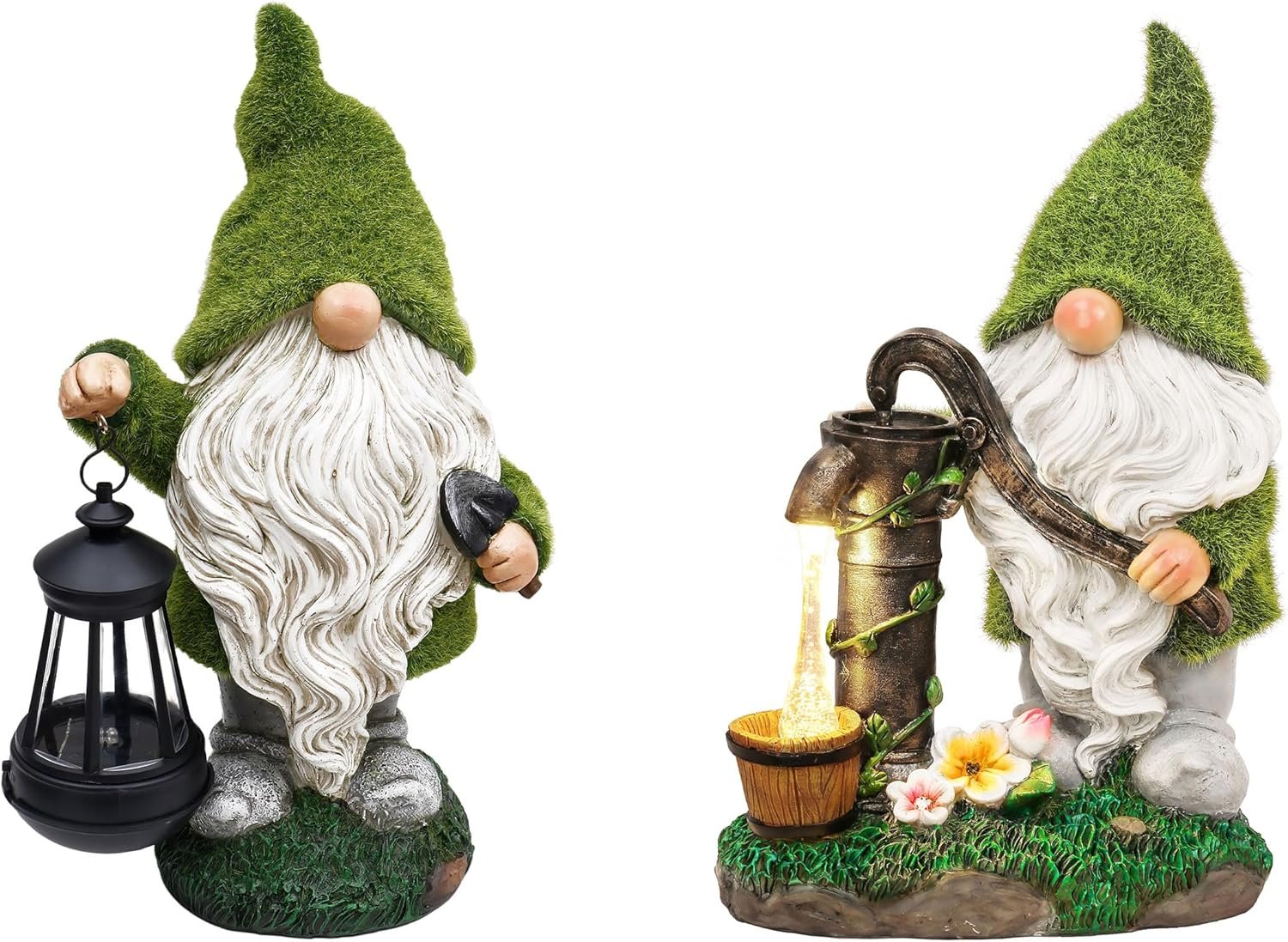 TERESA’S COLLECTIONS Resin Garden Gnomes Decor with Solar Lights, Green Outdoor …