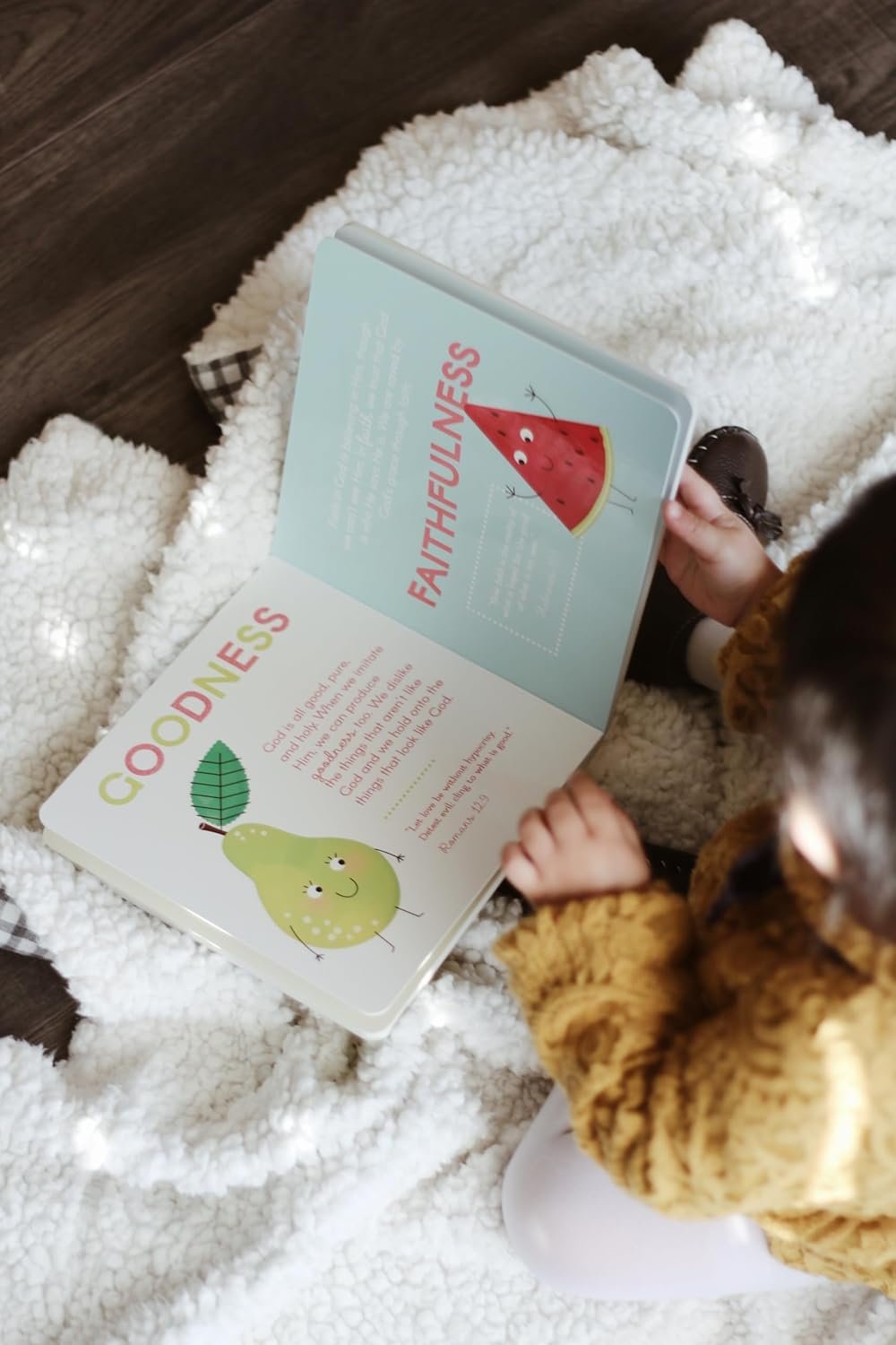 This adorable board book guides parents and children through the fruit of the Spirit. The book provides Scripture, definitions, and encouragement for families to walk in the fruit of the Spirit. There is even a fun matching game in the back of the book.