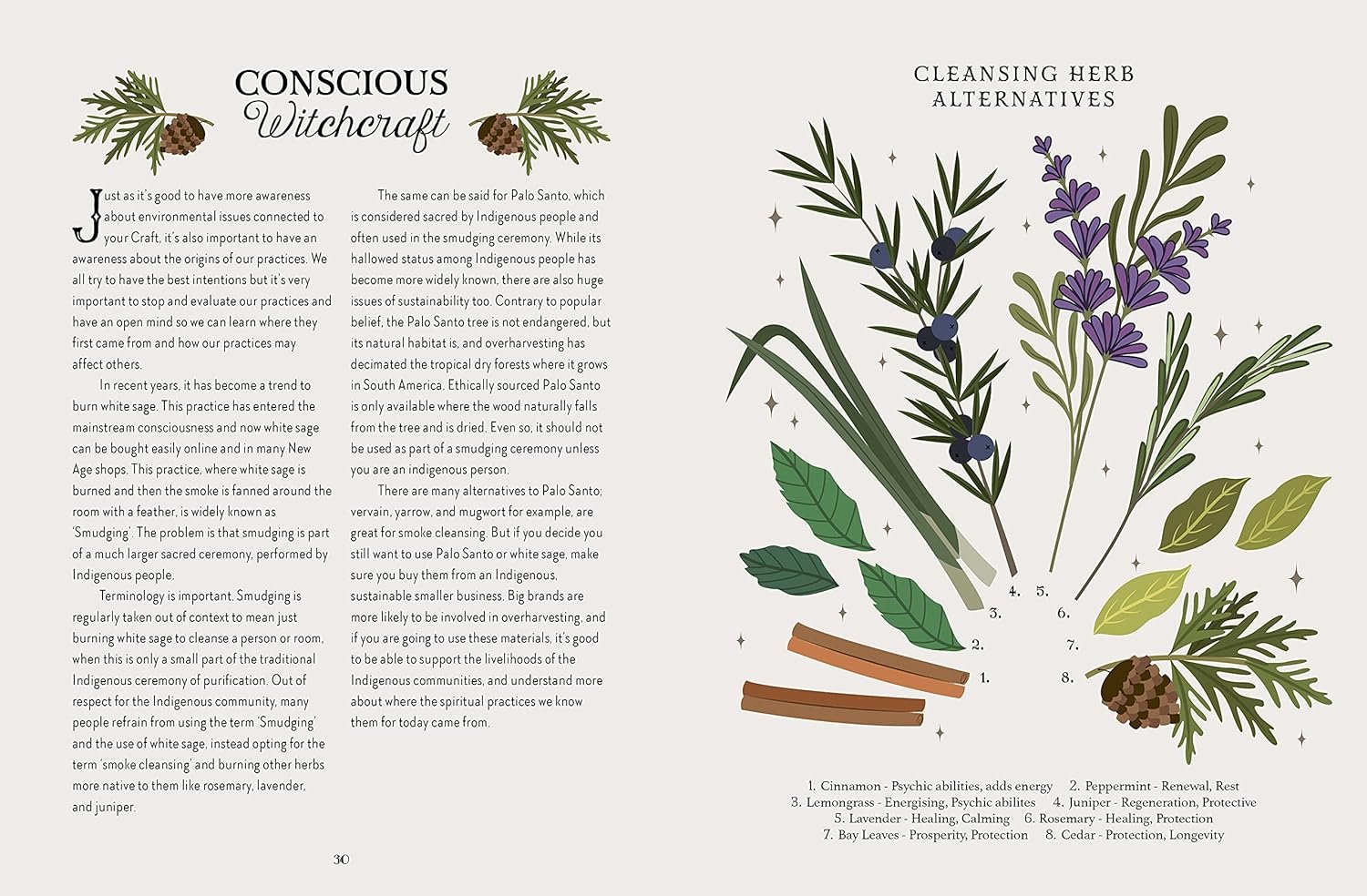 How to build a budget-friendly practice using only simple tools and ingredients in your cupboardsThe witch’s wheel of the yearSpellcraftCandle magickHerbs and foragingDivination, such as tarot, scrying and pendulum dowsingCreating your own sigilsA witch’s relationship to the moon, sky and natureHow to practice witchcraft discretely in the broomcloset … and much more!