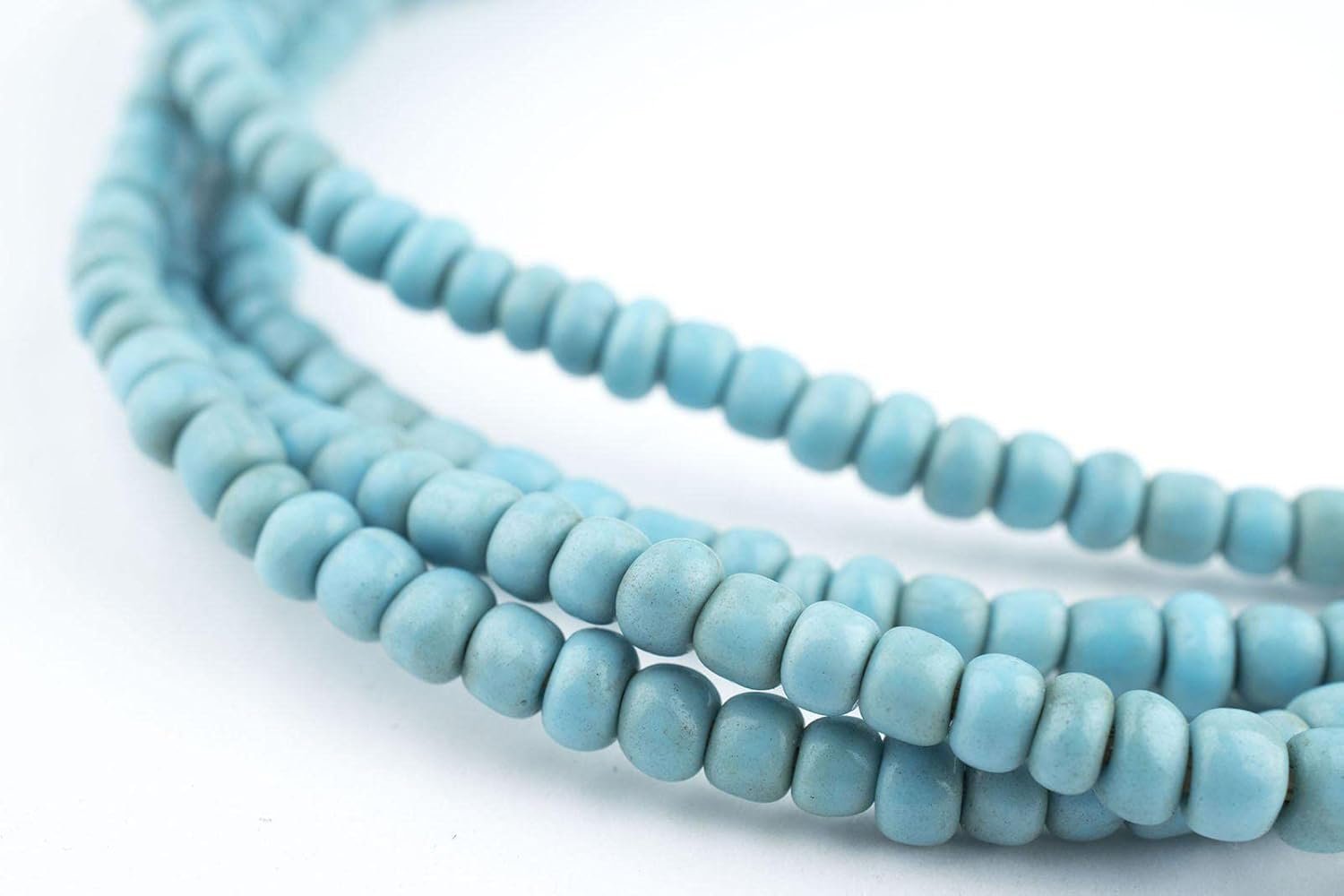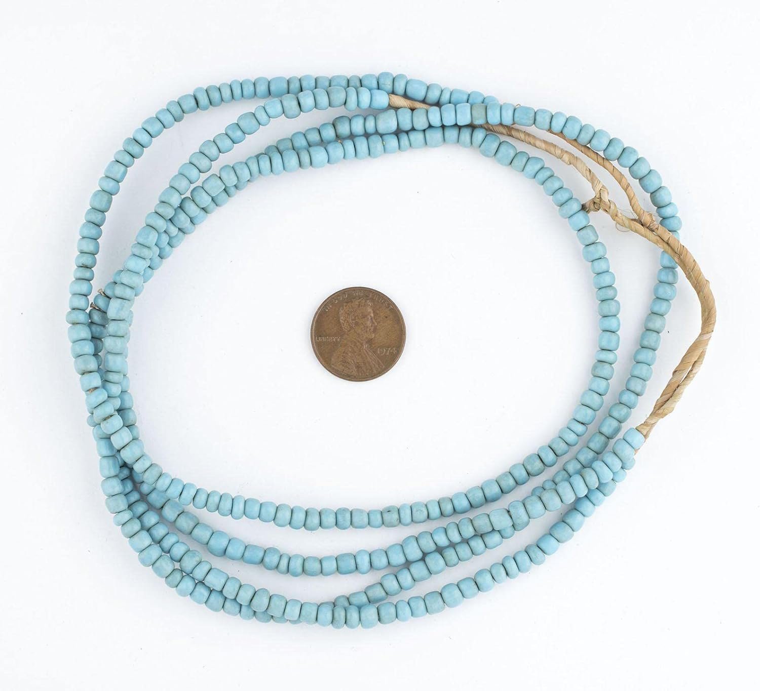 TheBeadChest Vintage Turquoise Blue Glass Beads (2 Strands), Ghanaian Glass Bead…