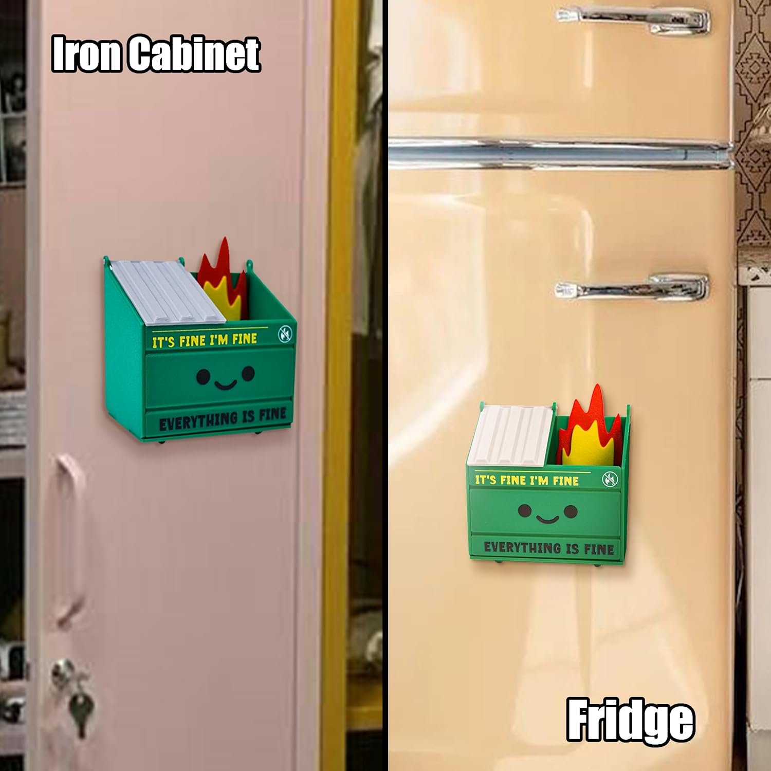 Dumpster Fire Pencil Holder Funny Magnetic Pen Holder Set of 2,Strong Magnets to Store Marker Pencil Organizer for Refrigerator Whiteboard Locker Home Office or Hospital