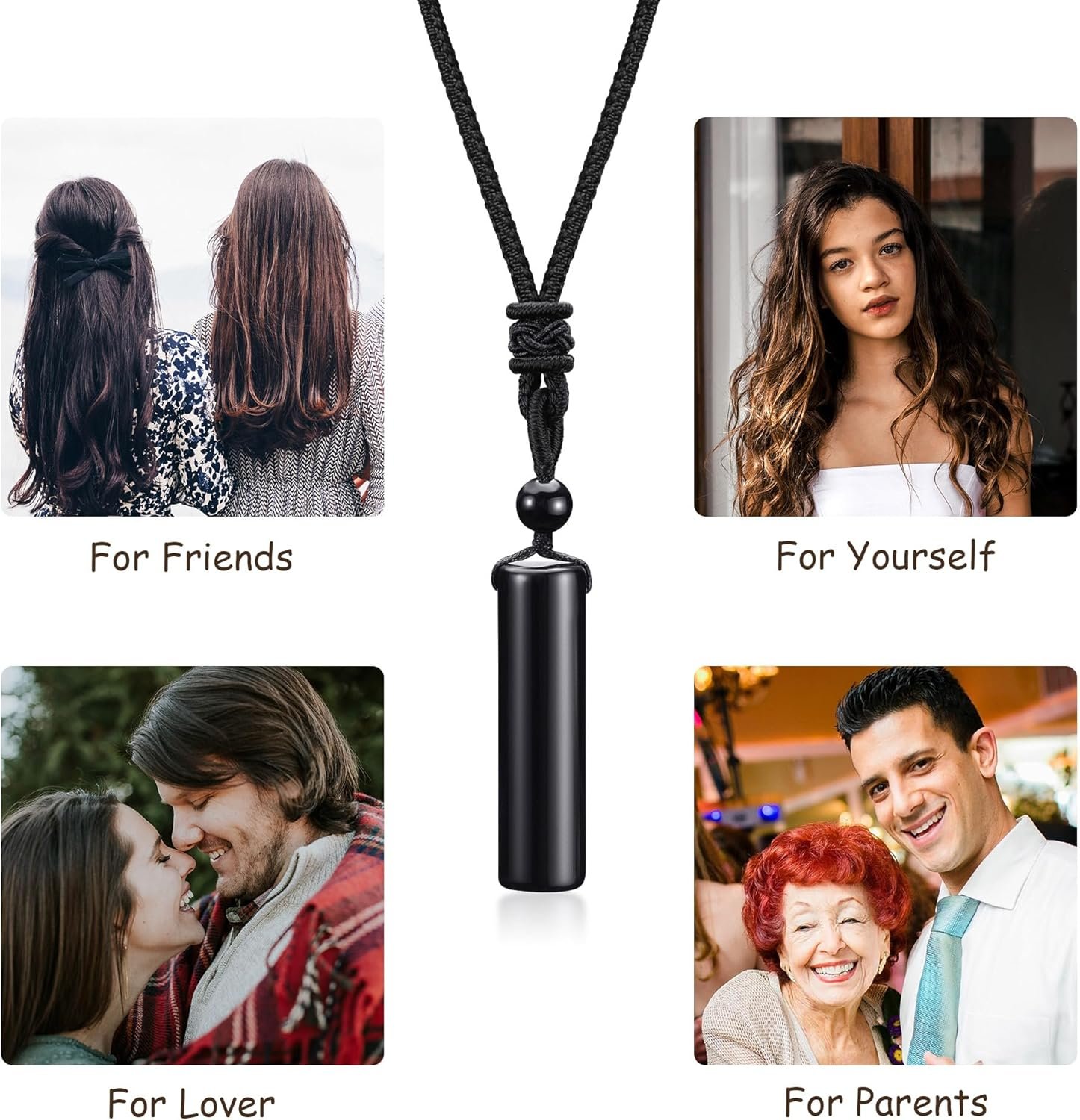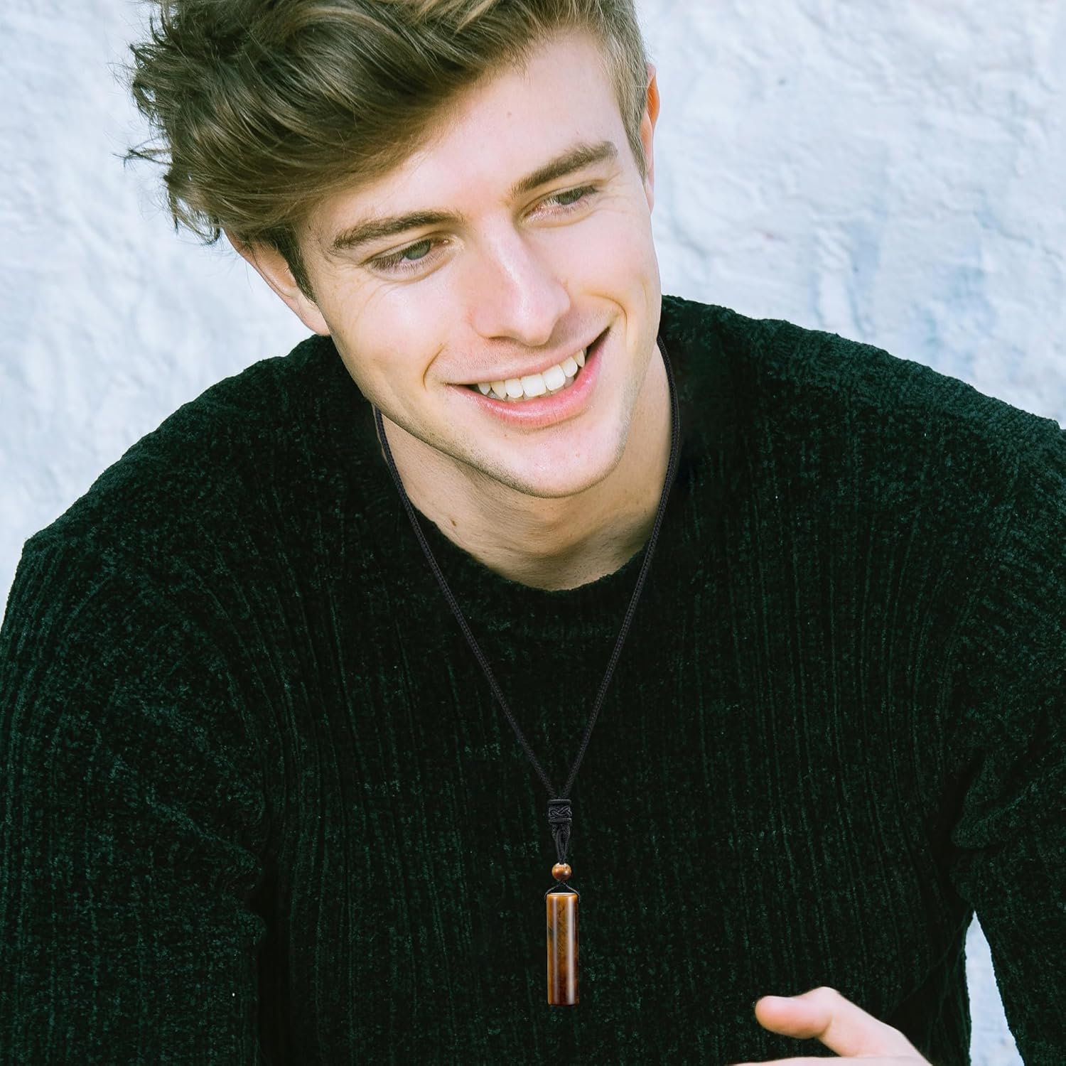 Top Plaza 2 Pcs Healing Crystal Stone Necklaces for Men Amulet Protection Cylind…