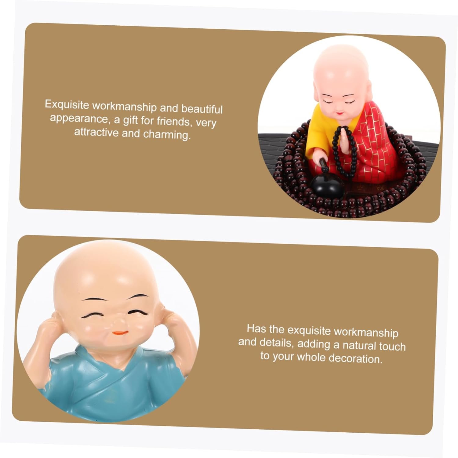small statue decor This item is a set of Buddha monk shaped statues which are made from resin material, not easy to break.cute kung fu monk statue A great present choice for friends, family and more.car interior figurine A fun decoration for car, home, office etc.kungfu monk statue Solar-powered design, put it under the sunshine, it will nod and knock on wooden fish