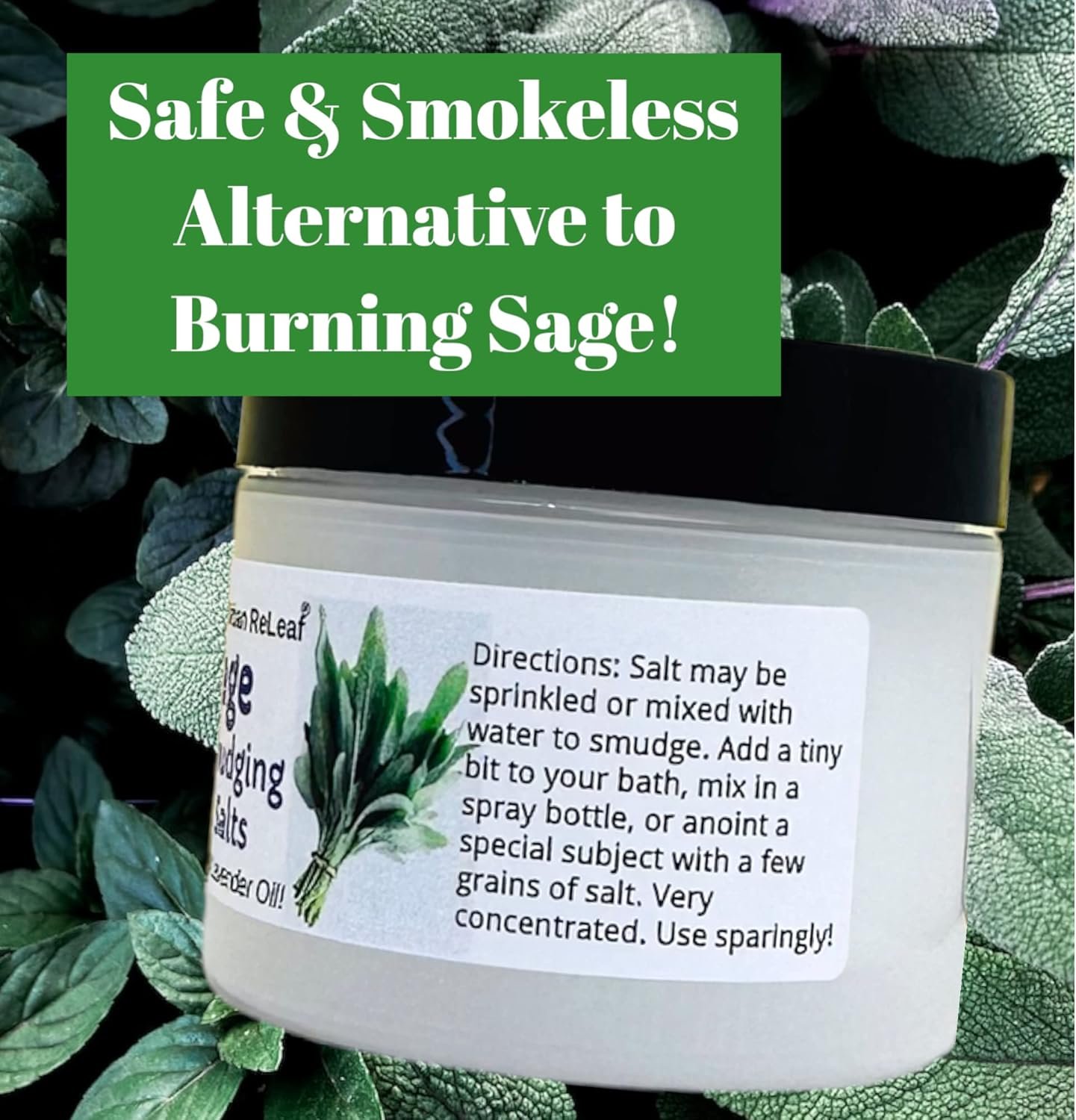 Urban ReLeaf Sage Smudging Salts with Lavender Oil. This smokeless alternative to burning sage can be used anywhere… work, home, social settings, during ritual and cleansing, on the go or by your bedside.