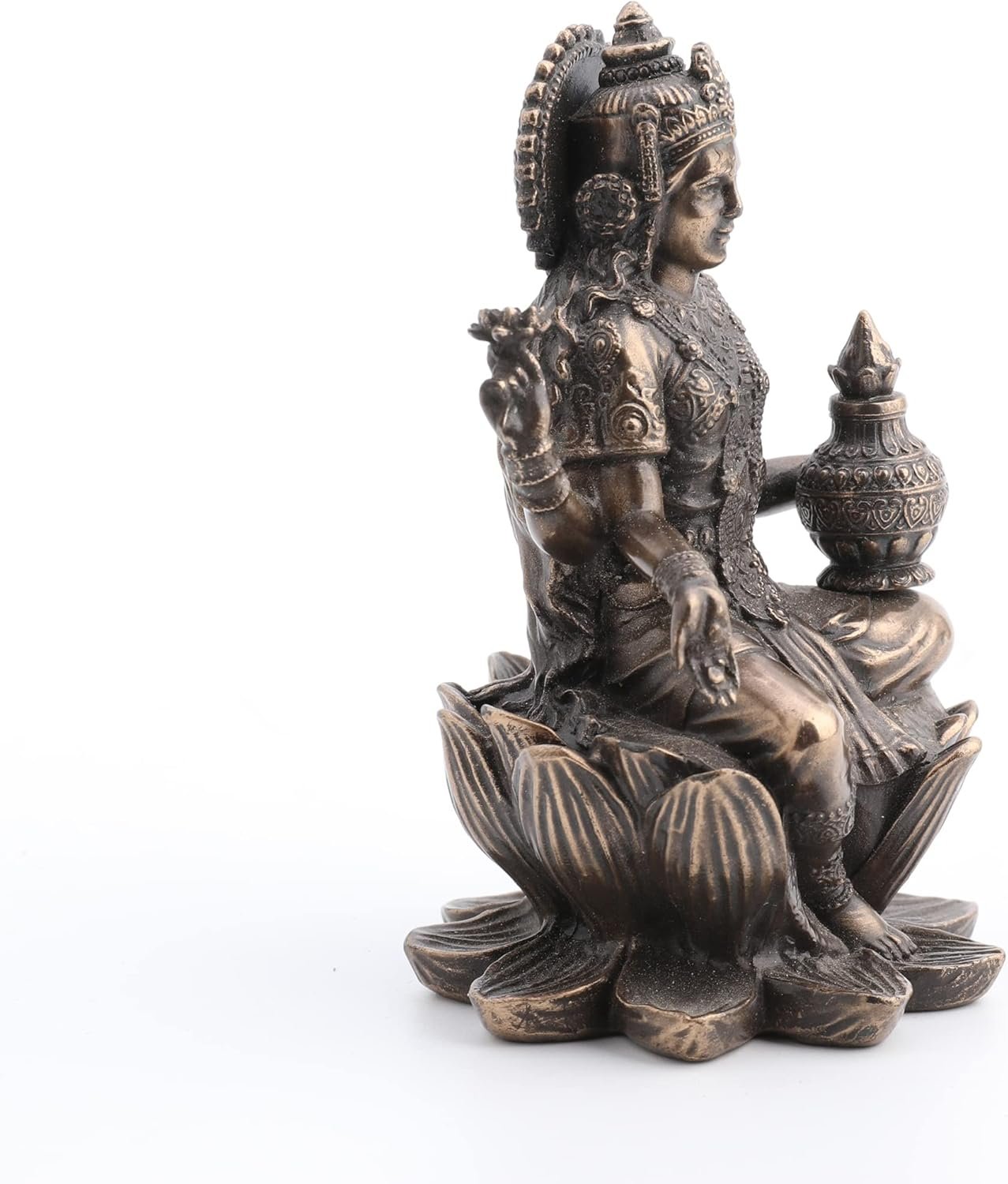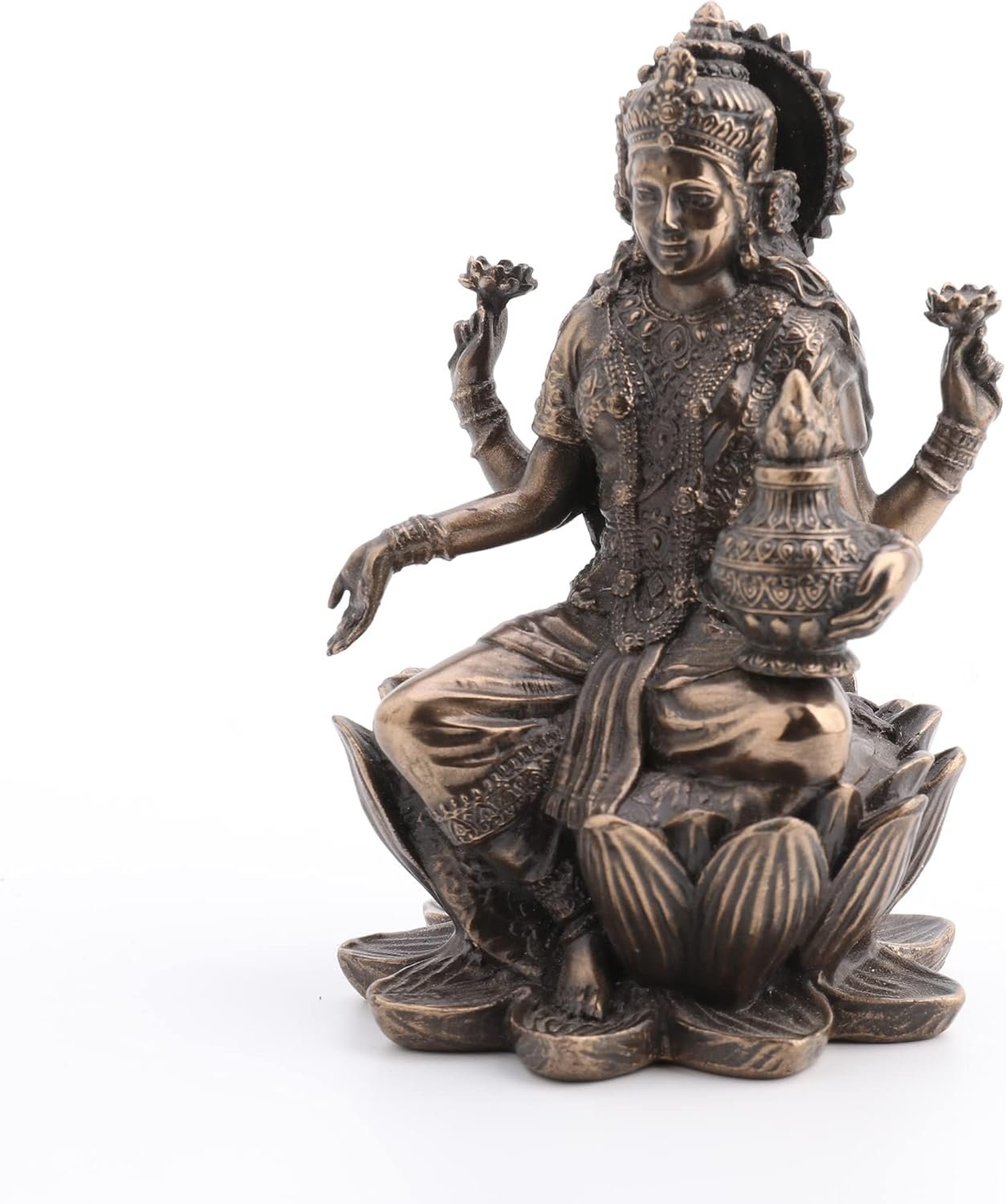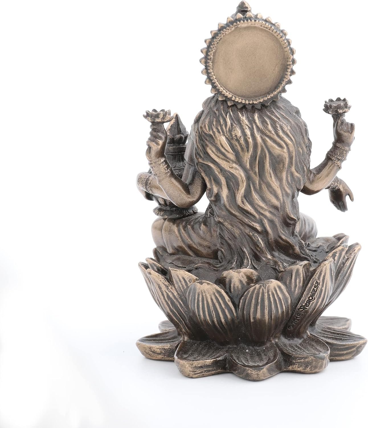 Veronese Design 3.3″ Hindu God Lakshmi Sitting On Lotus Resin Figurine Bronze Fi…