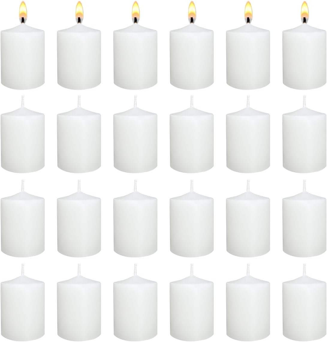 White Votive Candles 15 Hour Burn Time Unscented Candles Votives Bulk Pack of 24 Small Pillar Candles