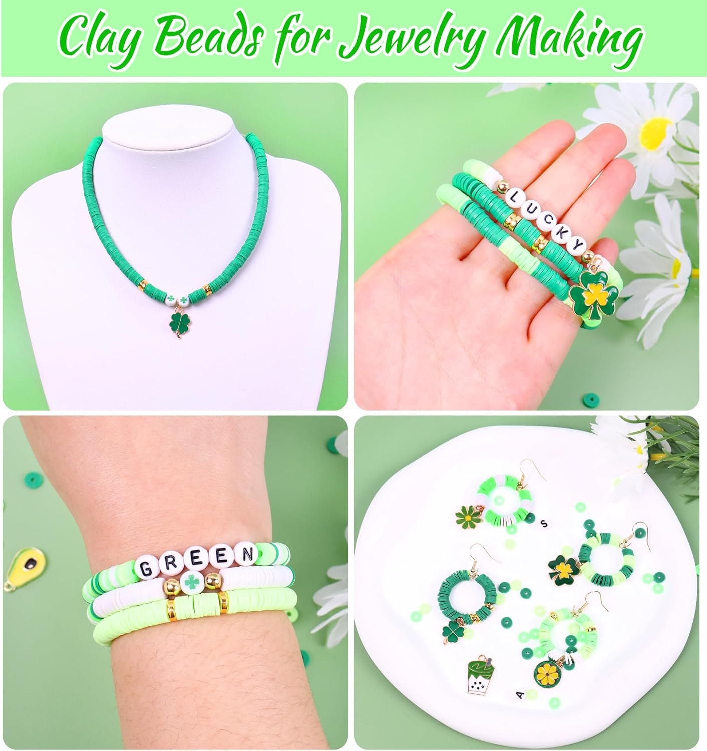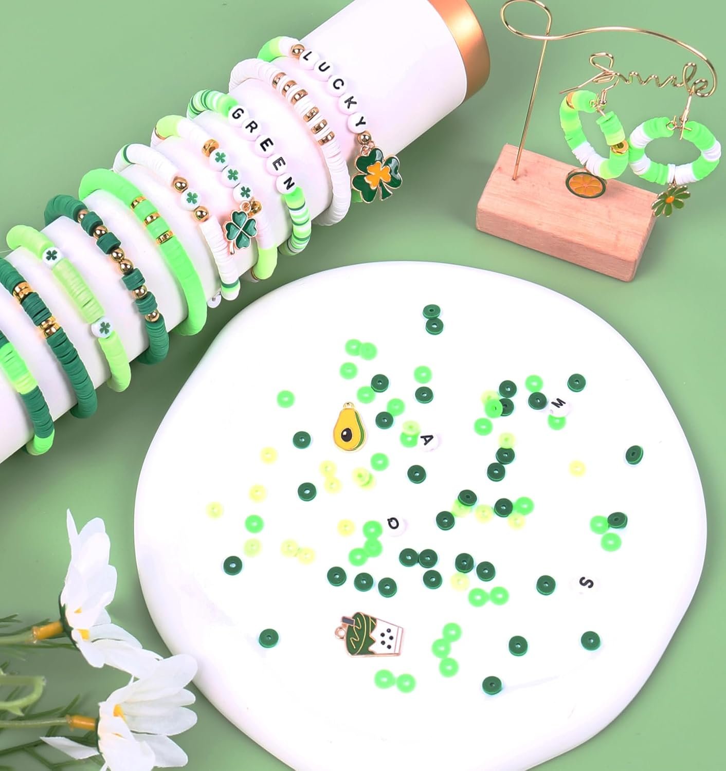 🍀Complete Bracelet Making Kit: You will receive 3,280 clay beads, 90 letter beads, 80 metal spacer beads, 6 cute green charms, 6 pieces earrings, and various small accessories. Our clay bead set is an all-in-one solution for creating bracelets, necklaces, earrings, bag chains, and more. No need to purchase anything extra.