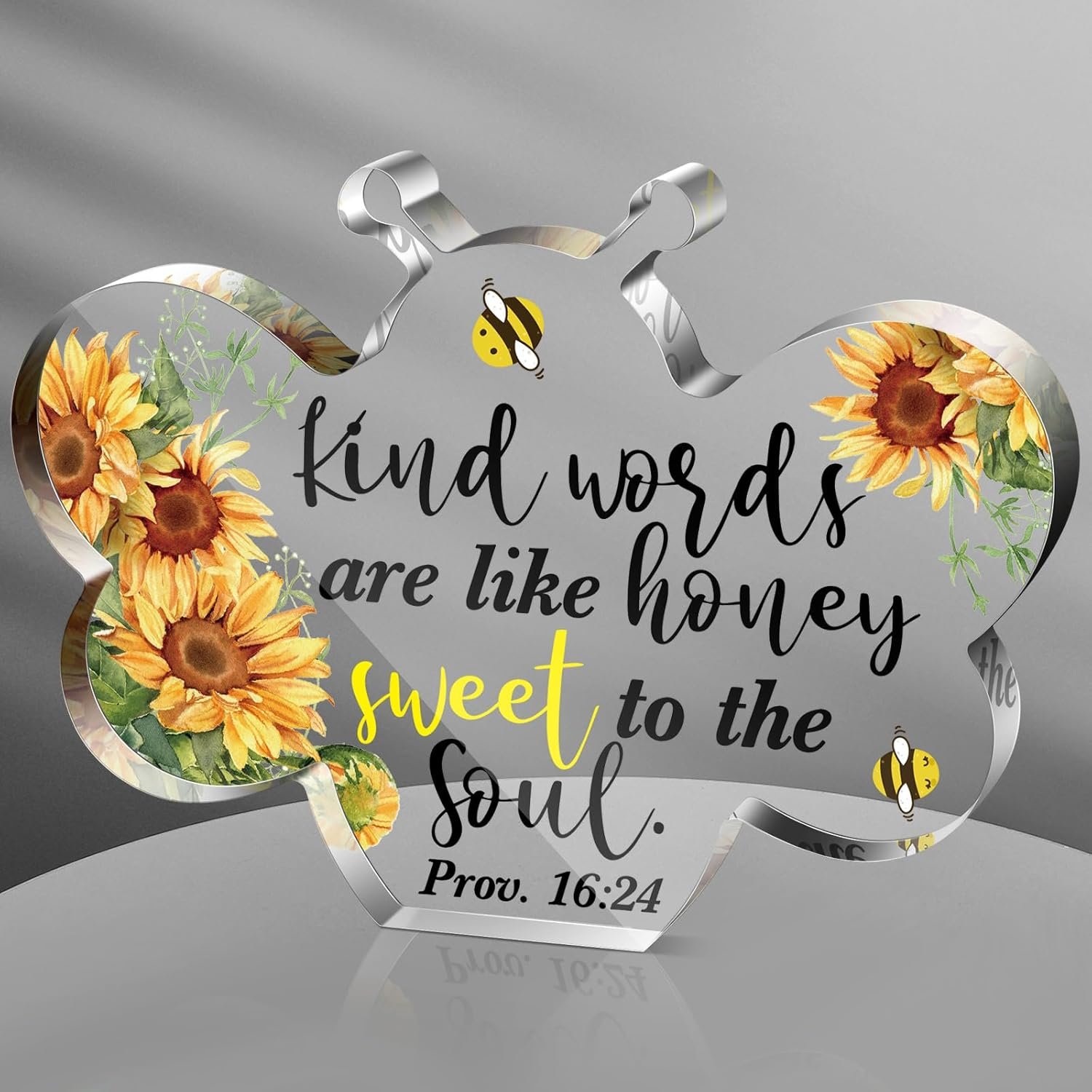 Eye Catching Design: the bible verses decor is designed in the shape of bee, and is printed with some sunflower, the sentence [happy moments praise god, difficult moments seek god, quiet moments worship god, painful moments trust god, every moment thank god], the pattern and words above show your belief deeply