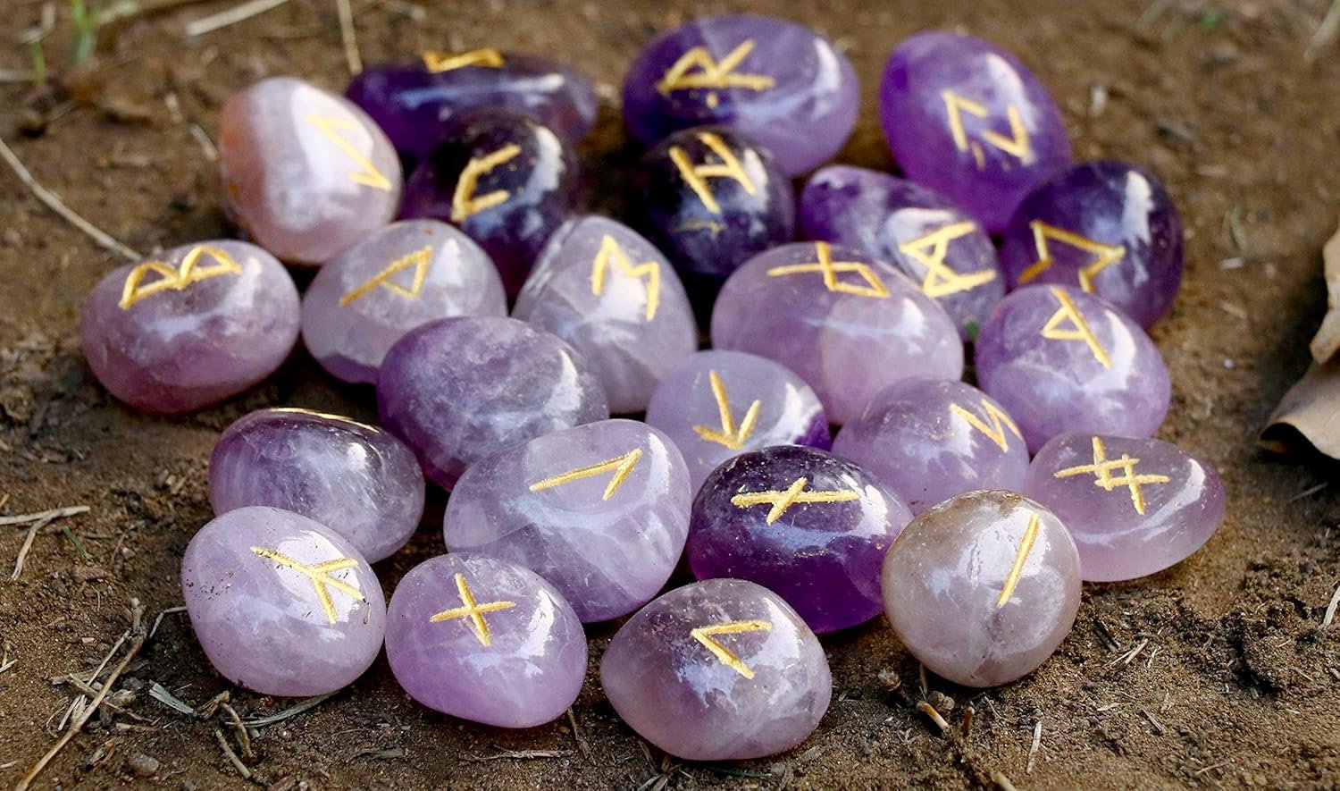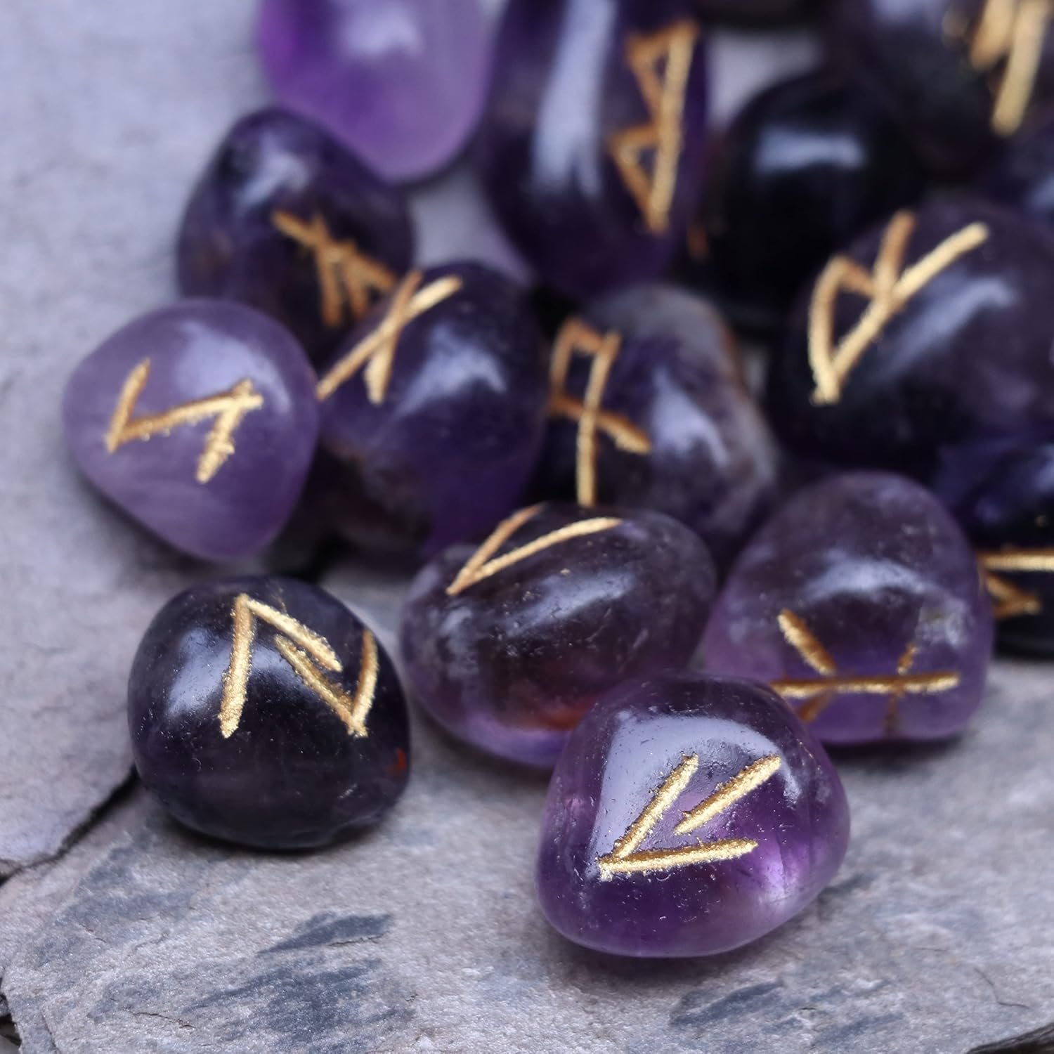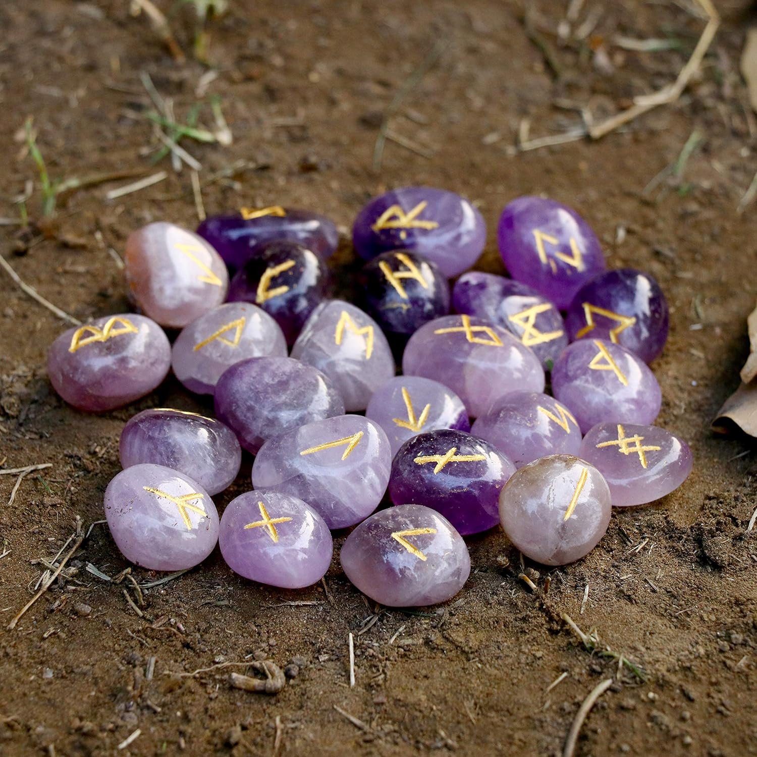 ZAICUS Amethyst Rune Stones – Gemstone Runes for Beginners Healing Crystal Kit A…