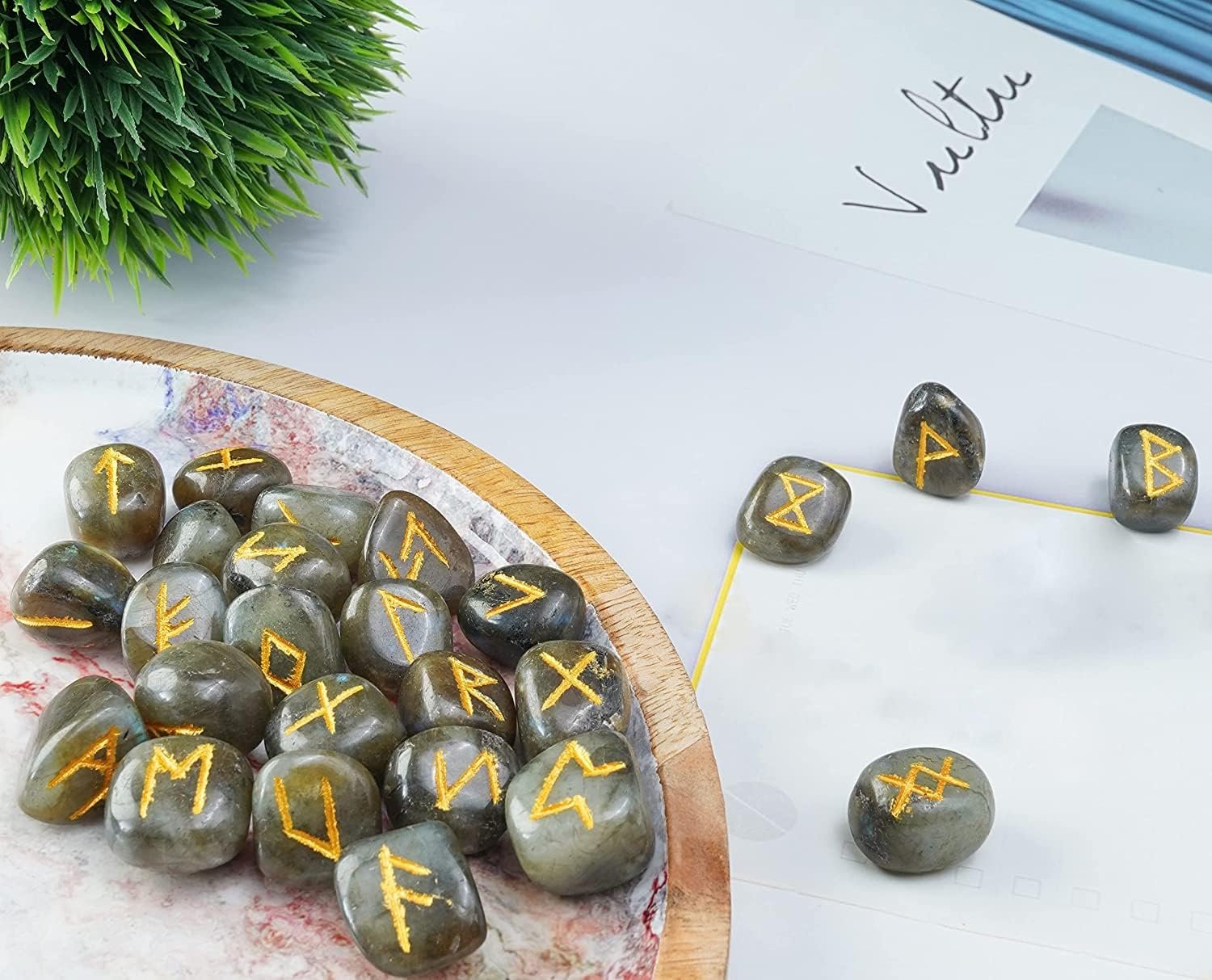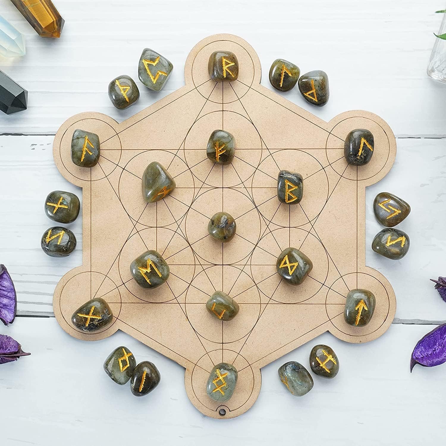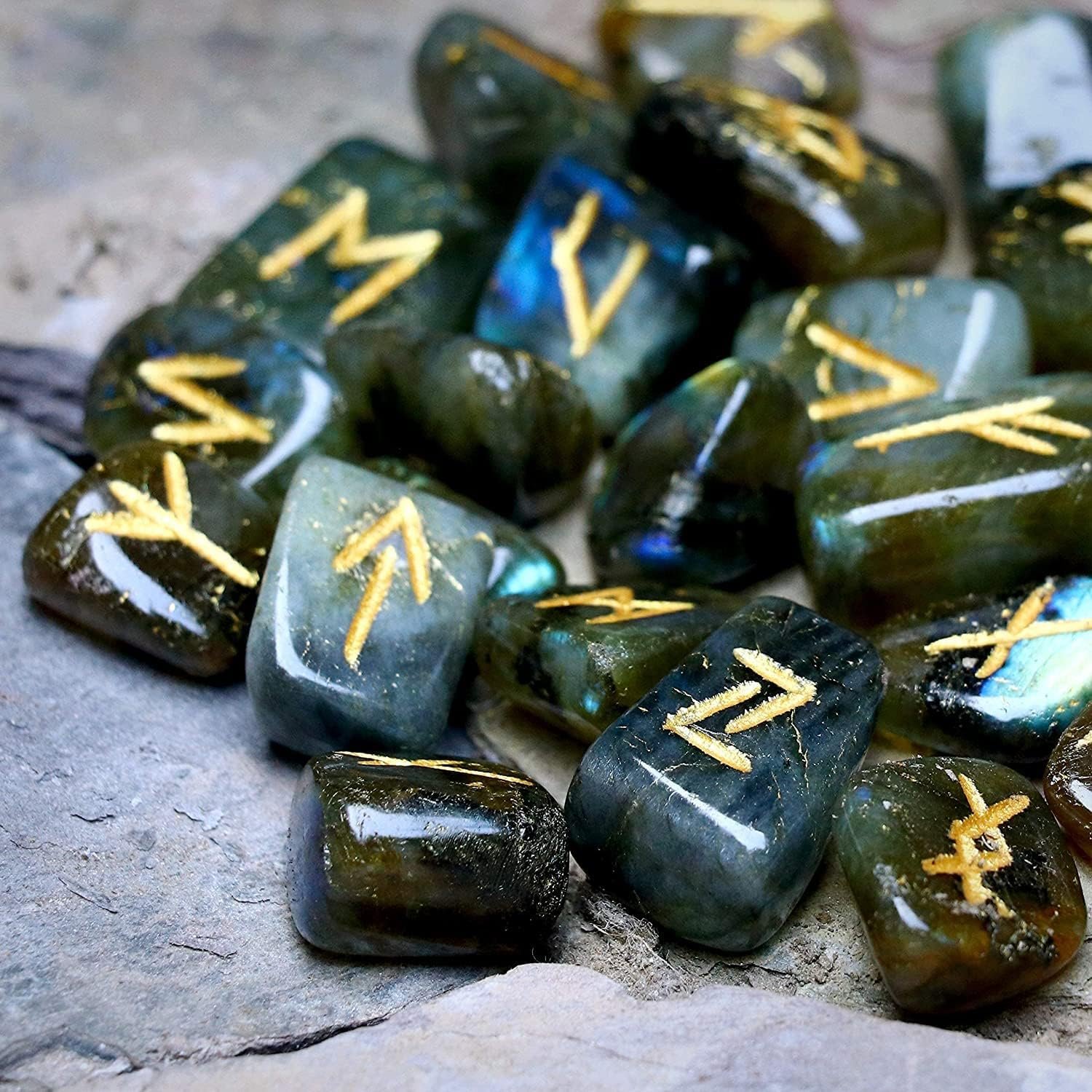 ZAICUS Labradorite Rune Stones – Gemstone Runes for Beginners Healing Crystal Ki…